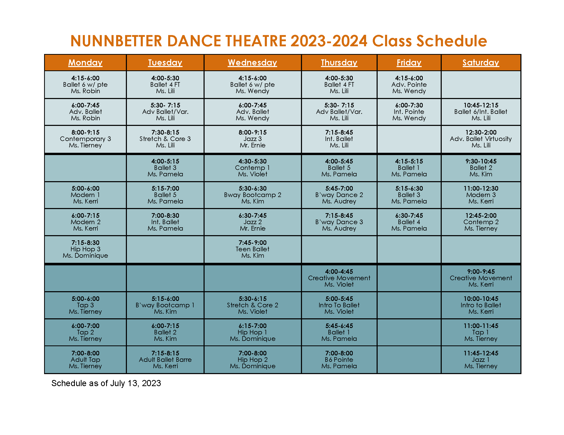 Schedule โ Nunnbetter Best Dance Studio in Bergenfield NJ